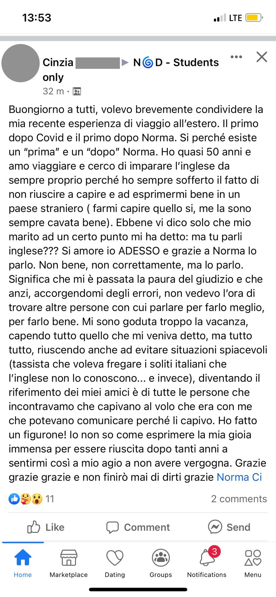 ➡️ l’ingrediente segreto era che NESSUNO capiva una parola di italiano e quindi ero “forced” ad essere continuamente circondata dalla lingua inglese.